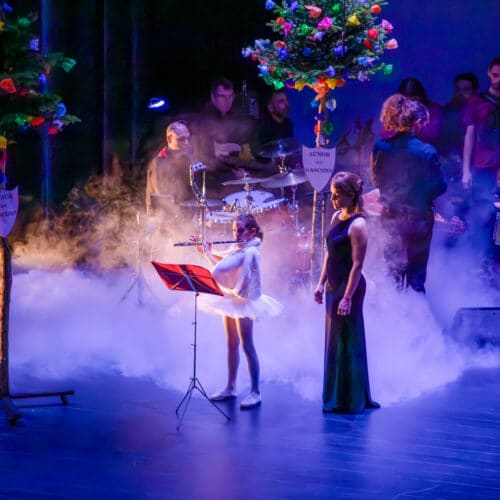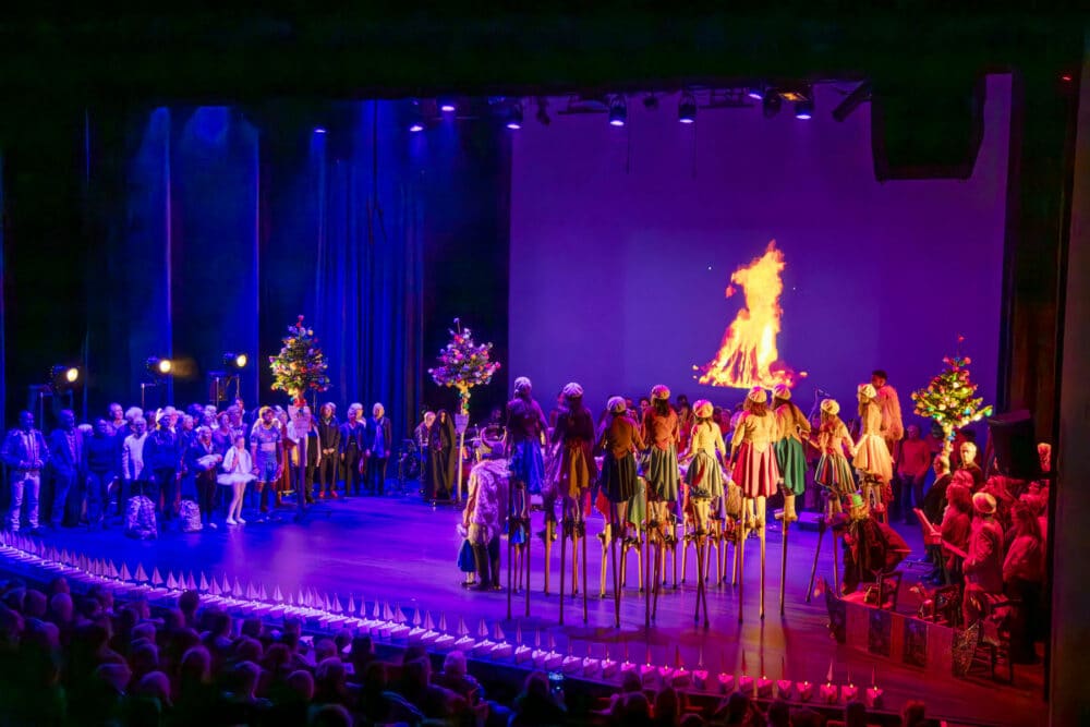 La pastorale organisée par l’association Hèstas e Pastorals en baisch Ador, a été coordonnée par Guy Mondorge et Bernard Dauga, scénarisée par Alain Munoz, avec Fanny Chatelain en chef de chœur. Elle a réuni 150 personnes sur la scène du théâtre Quintaou, les 14 et 15 décembre 2024. Des jeunes, des très jeunes sur les échasses, des musiciens, des chanteurs, des acteurs, des coursayres, des rugbymen et même une jolie étoile ont régalé sur plus de 2h, un public nombreux, ravi de fêter ensemble le solstice d’hiver…
