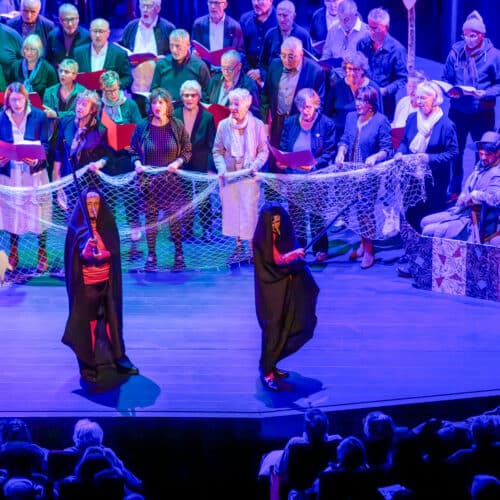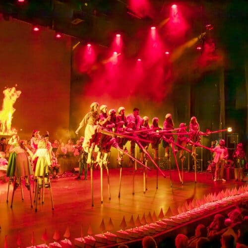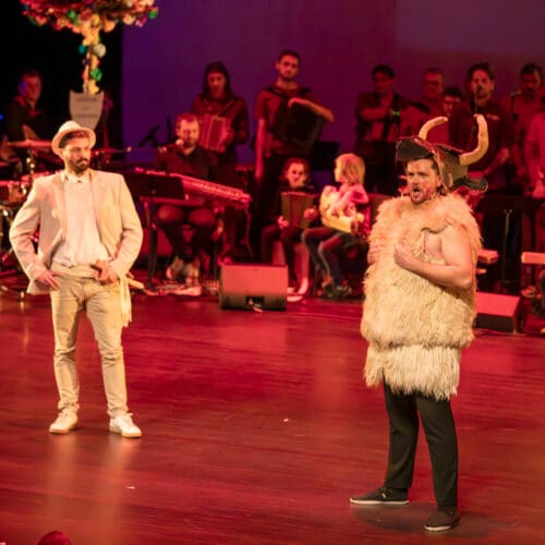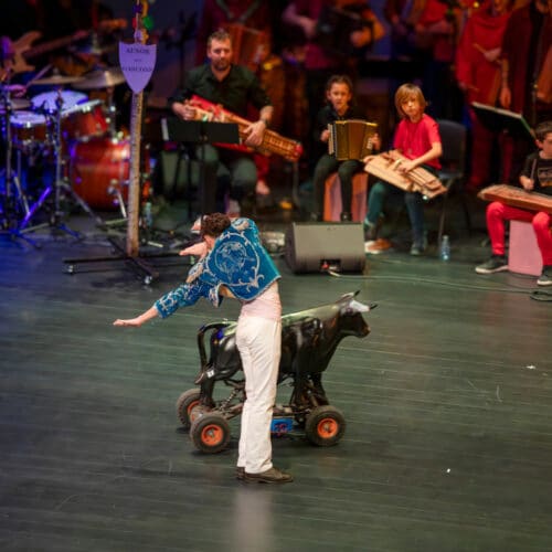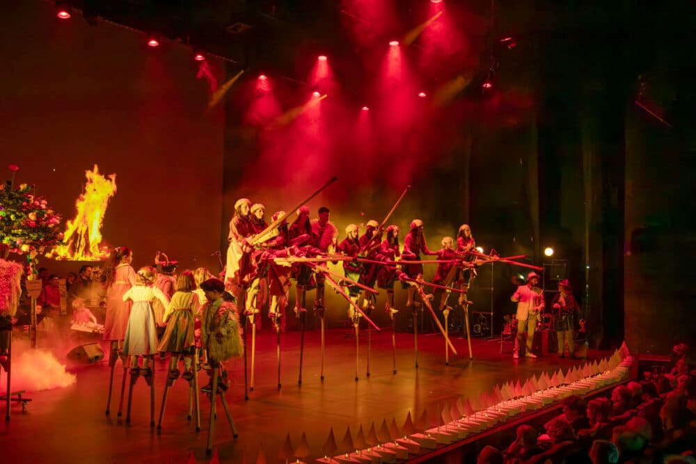 150 coristas, dançaires, actors, « de halha en halha », que’s mobilizan tà afrontar las armadas deu rei Eròdes, dont lo terrific Ramponòt de la mitologie gascona, e auvar atau « la Hèsta gascona de Nadau ».