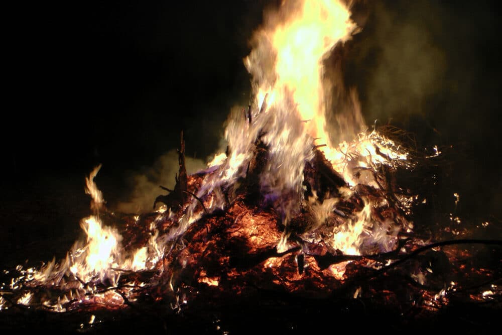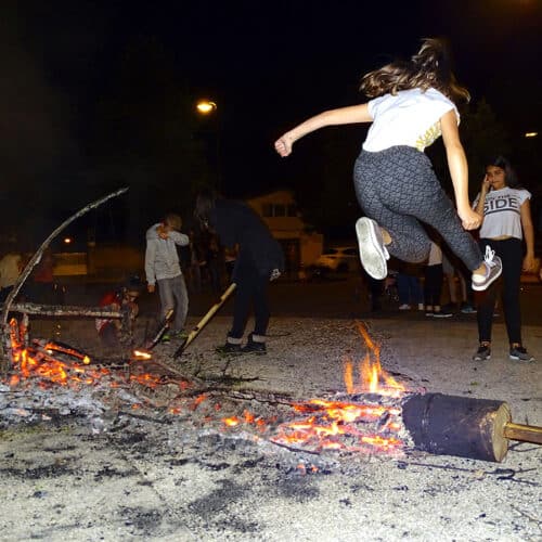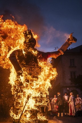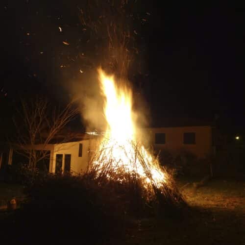 Il s’agit souvent de feux fixes : rituels collectifs, organisés par les habitants d’un même hameau, d’un quartier, d’une maison. Ils peuvent prendre la forme d’un bûcher ou plus simplement d’un amas de détritus et de végétaux entassés au long de l’année et que l’on embrase à cette occasion. Ces feux se répondent ainsi de hameau en hameau, de coteau en coteau, jalonnant pour une soirée toute la campagne gasconne.