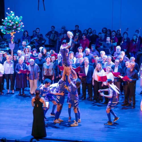 150 choristes, danseurs, acteurs, «de halha en halha » de flamme en flamme, se mobilisent pour affronter les armées du roi Hérode, dont le terrifiant Ramponeau de la mythologie gasconne, et sauver ainsi la « Fête gasconne de Noël ».