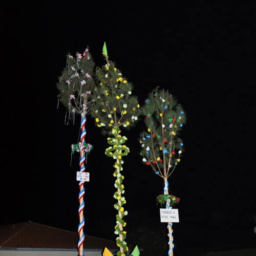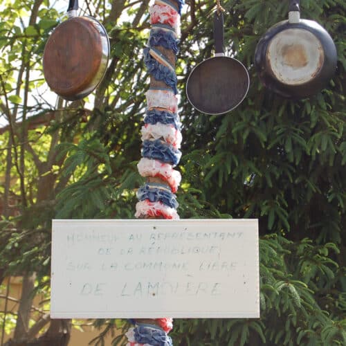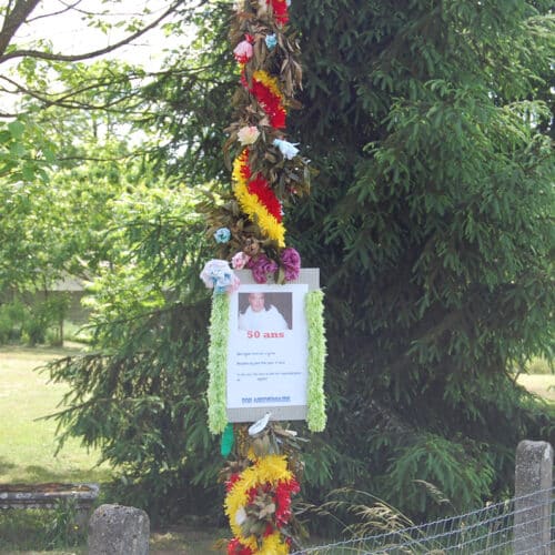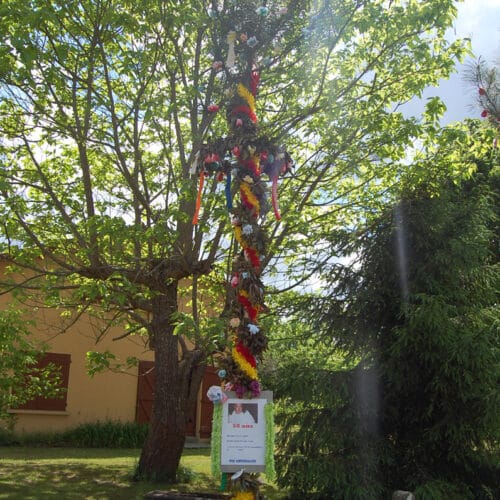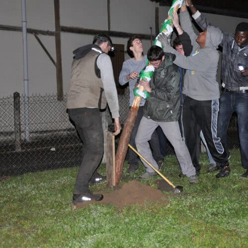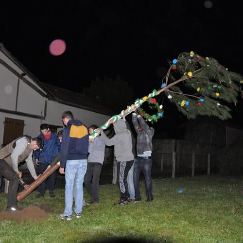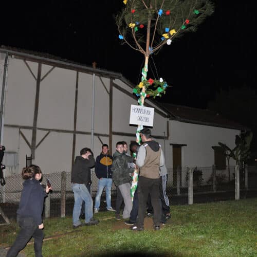 Photos de la pose des mais d’honneur dans ce village par “la classe”, dans la nuit du 30 avril au 1 mai 2014. Photos de Rémy Berdou, enquête : Mathilde Lamothe, Patricia Heiniger-Castéret et Rémy Berdou (Laboratoire ITEM EA 3002, Université de Pau et des Pays de l’Adour).