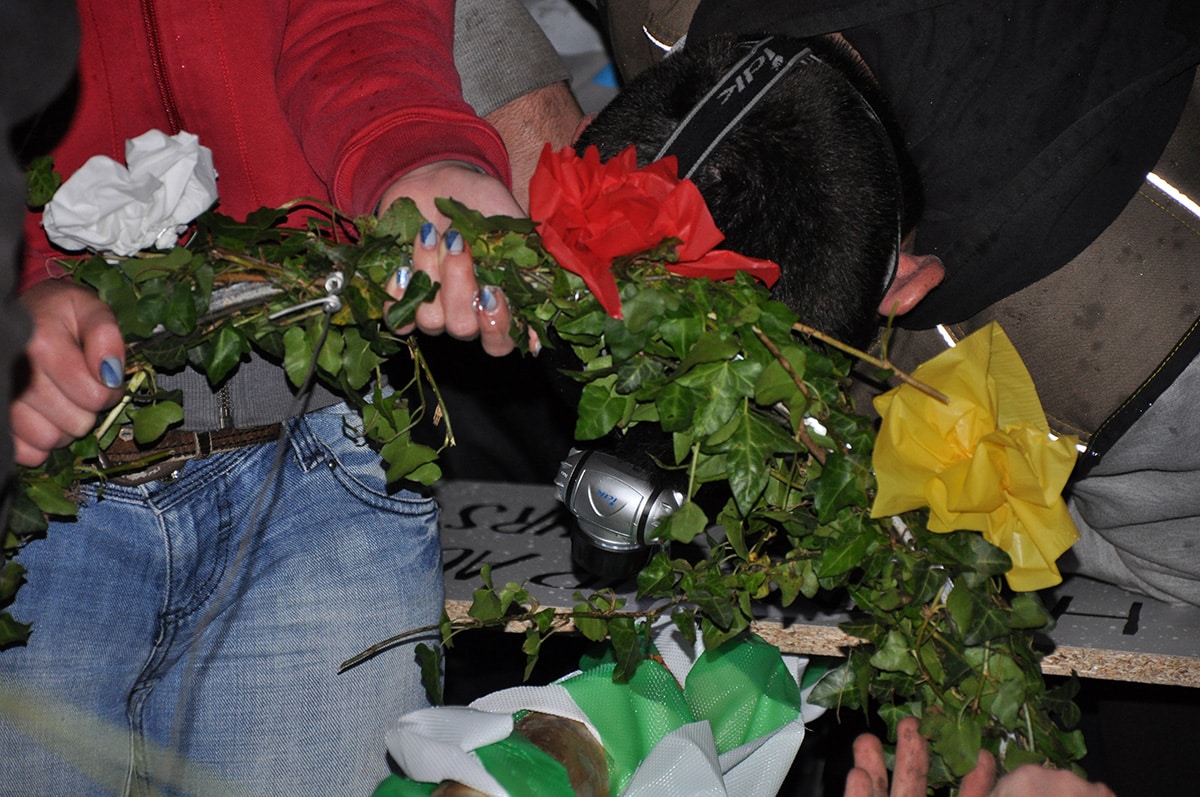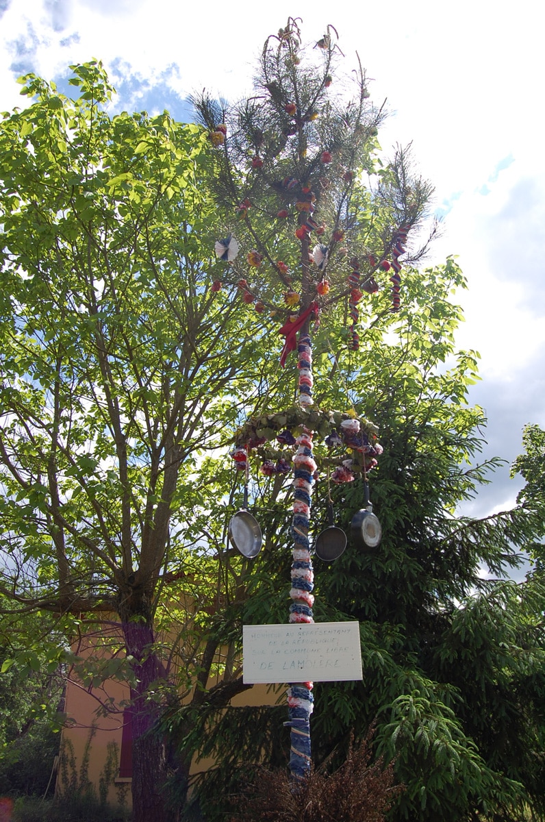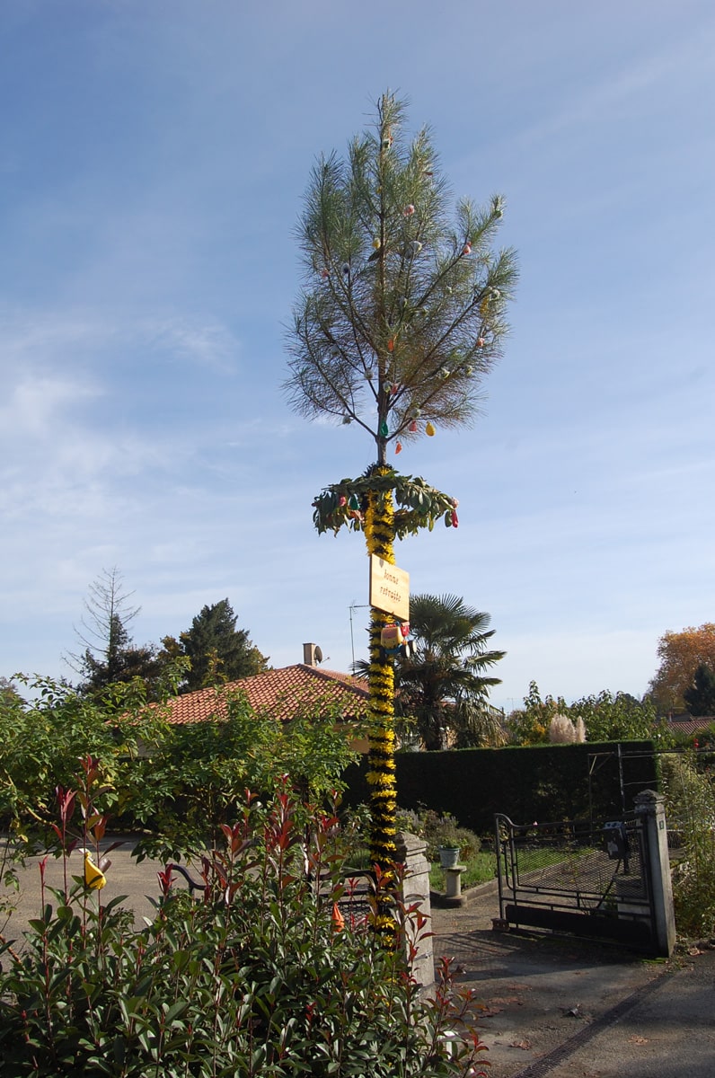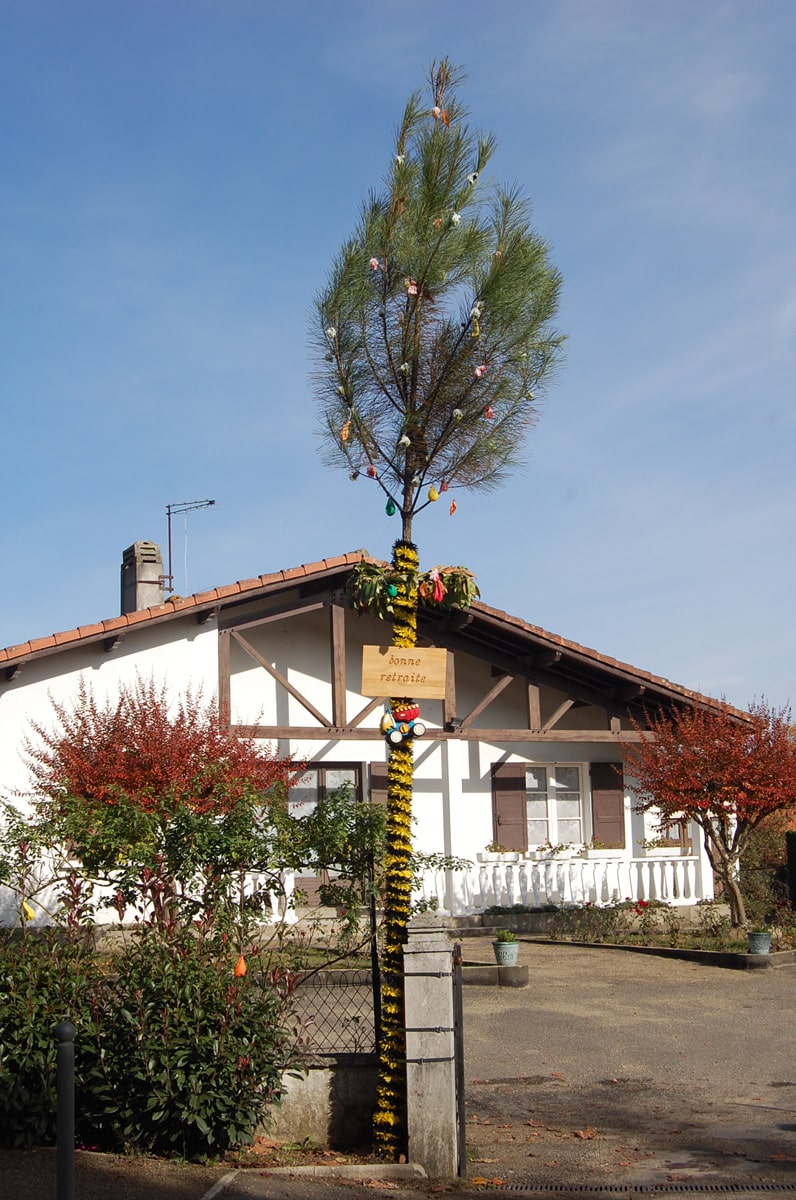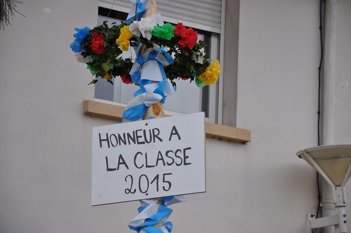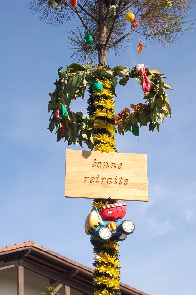 Photos de la pose des mais d’honneur dans ce village par “la classe”, dans la nuit du 30 avril au 1 mai 2014. Photos de Rémy Berdou, enquête : Mathilde Lamothe, Patricia Heiniger-Castéret et Rémy Berdou (Laboratoire ITEM EA 3002, Université de Pau et des Pays de l’Adour).