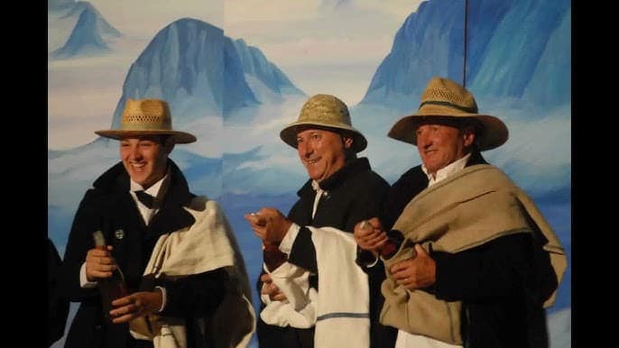 Tres eròis qu’arriban cadun de la soa part a Sent-Esprit de Baiona, au cap deu pont, dempuish la mar, dempuish lo flumi, e dempuish la montanha. Que cèrcan la Senta Familha. Qu’encontran e que visitan los mercaires de la civilisacion gascona, com lo rugbi, la corsa de vacas, los cants e las danças, lo piadar e las bartas…