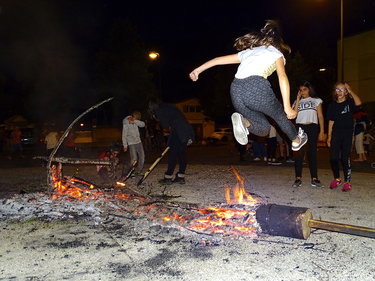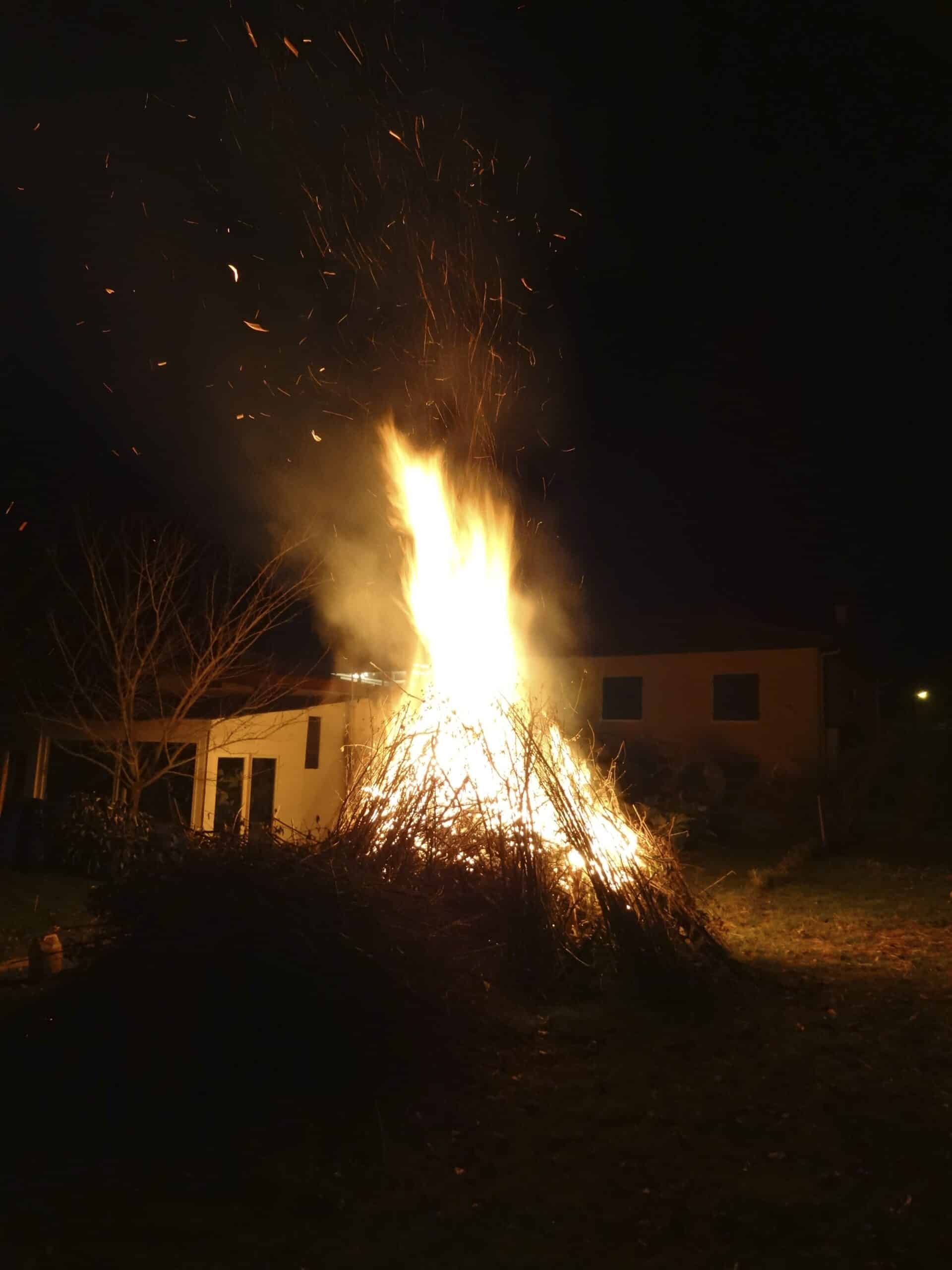 Il s’agit souvent de feux fixes : rituels collectifs, organisés par les habitants d’un même hameau, d’un quartier, d’une maison. Ils peuvent prendre la forme d’un bûcher ou plus simplement d’un amas de détritus et de végétaux entassés au long de l’année et que l’on embrase à cette occasion. Ces feux se répondent ainsi de hameau en hameau, de coteau en coteau, jalonnant pour une soirée toute la campagne gasconne.