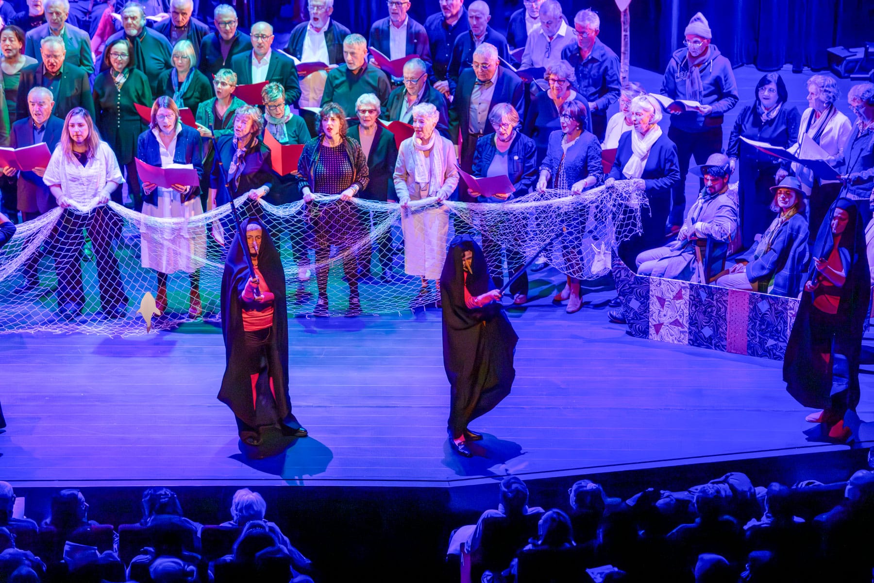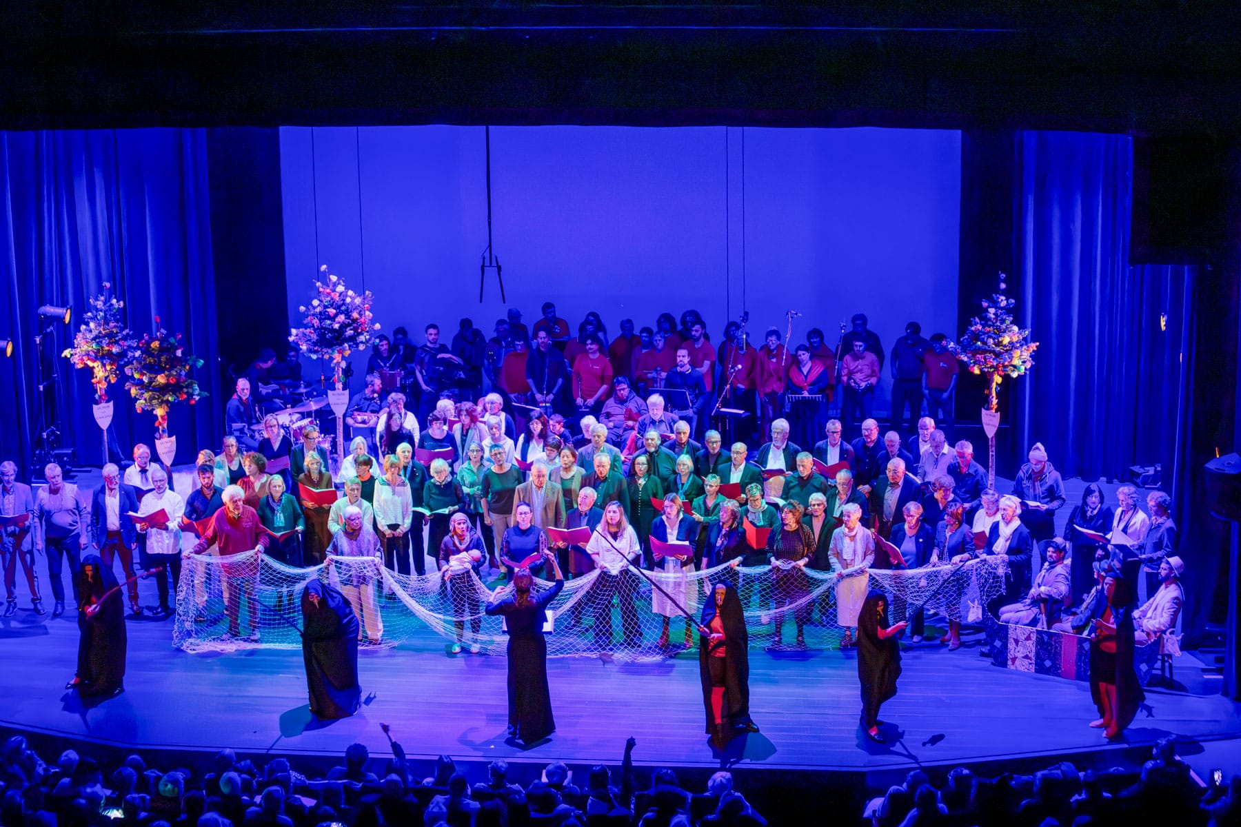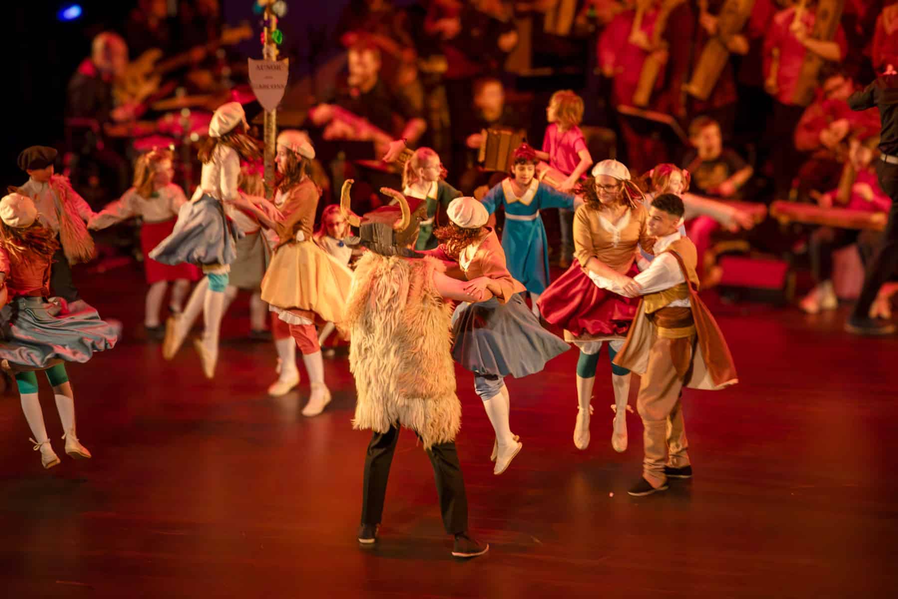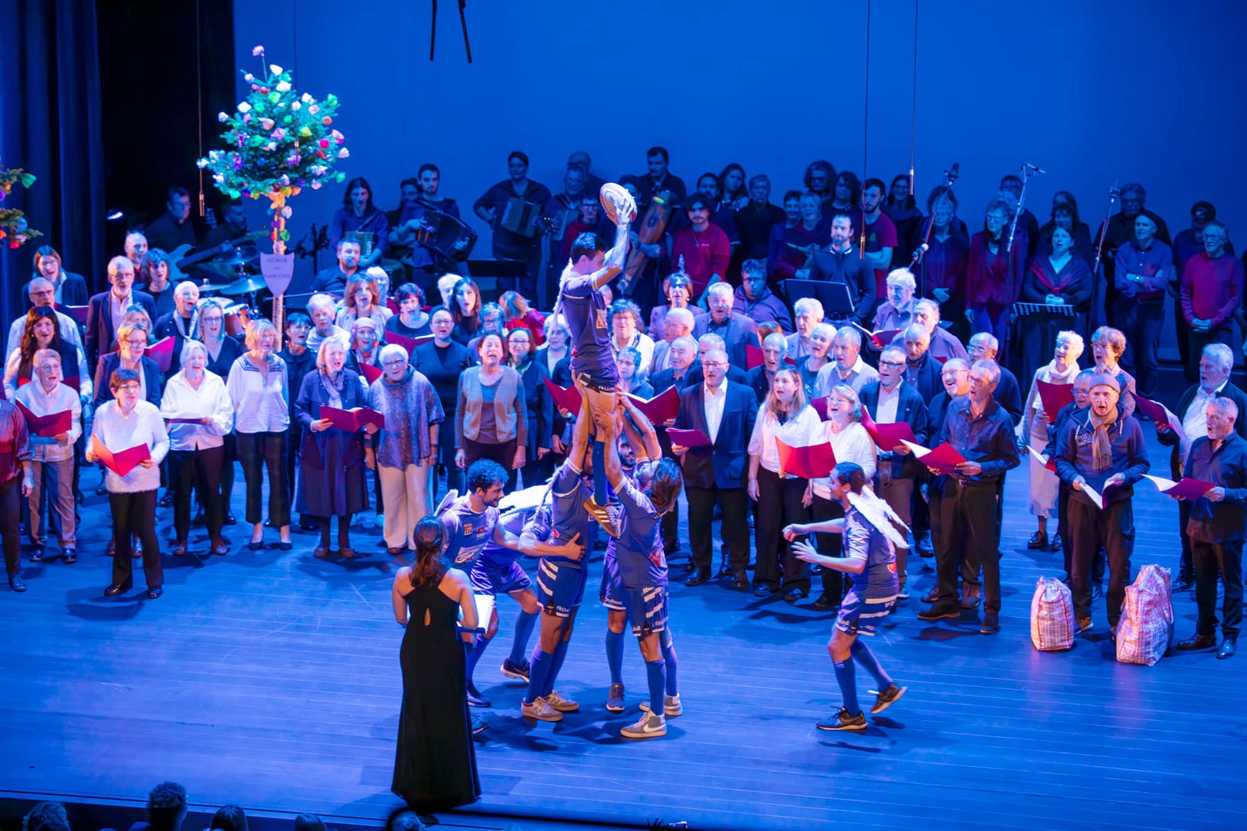 150 coristas, dançaires, actors, « de halha en halha », que’s mobilizan tà afrontar las armadas deu rei Eròdes, dont lo terrific Ramponòt de la mitologie gascona, e auvar atau « la Hèsta gascona de Nadau ».