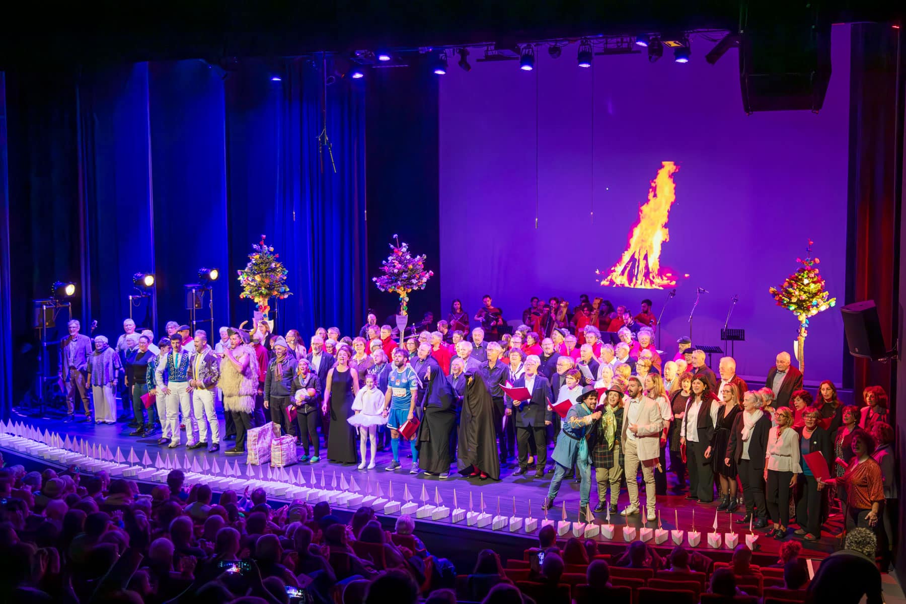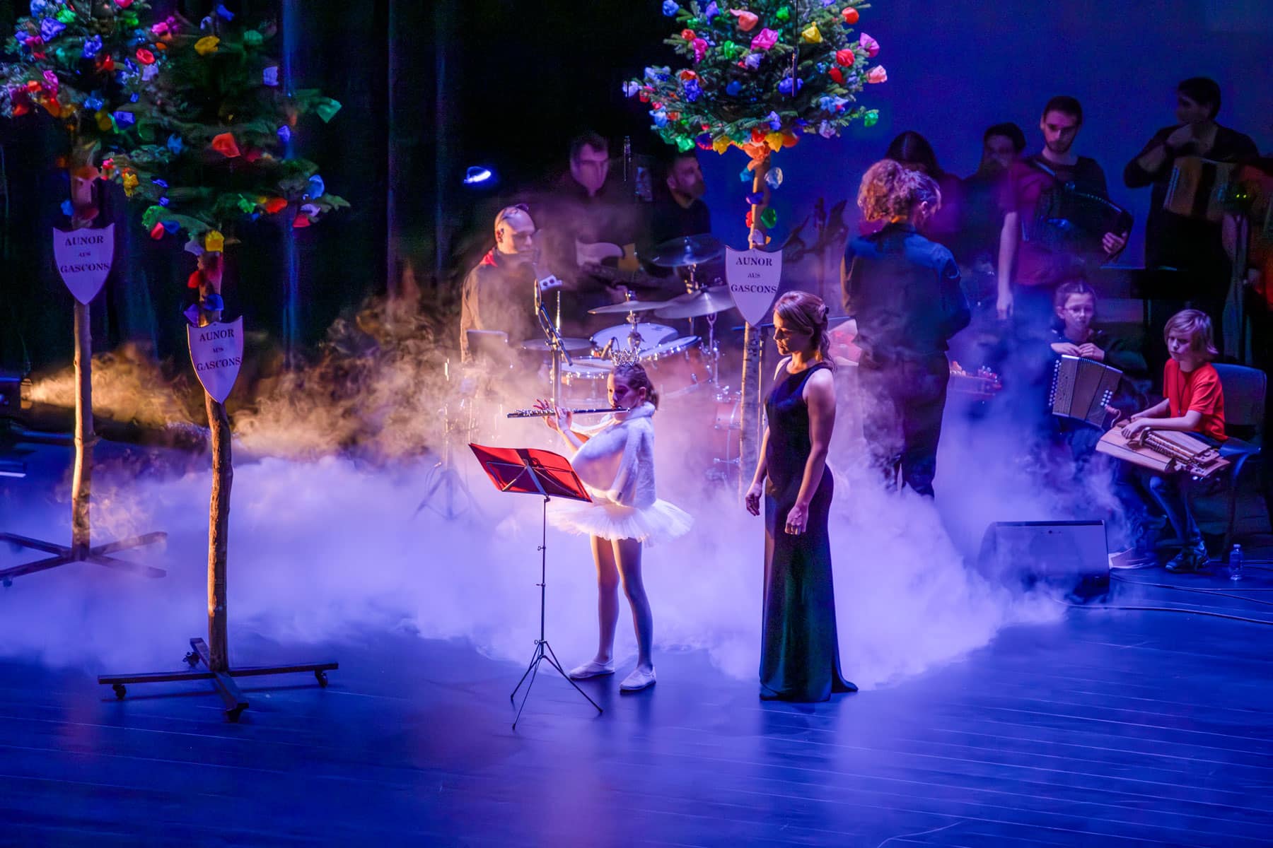 La pastorale organisée par l’association Hèstas e Pastorals en baisch Ador, a été coordonnée par Guy Mondorge et Bernard Dauga, scénarisée par Alain Munoz, avec Fanny Chatelain en chef de chœur. Elle a réuni 150 personnes sur la scène du théâtre Quintaou, les 14 et 15 décembre 2024. Des jeunes, des très jeunes sur les échasses, des musiciens, des chanteurs, des acteurs, des coursayres, des rugbymen et même une jolie étoile ont régalé sur plus de 2h, un public nombreux, ravi de fêter ensemble le solstice d’hiver…
