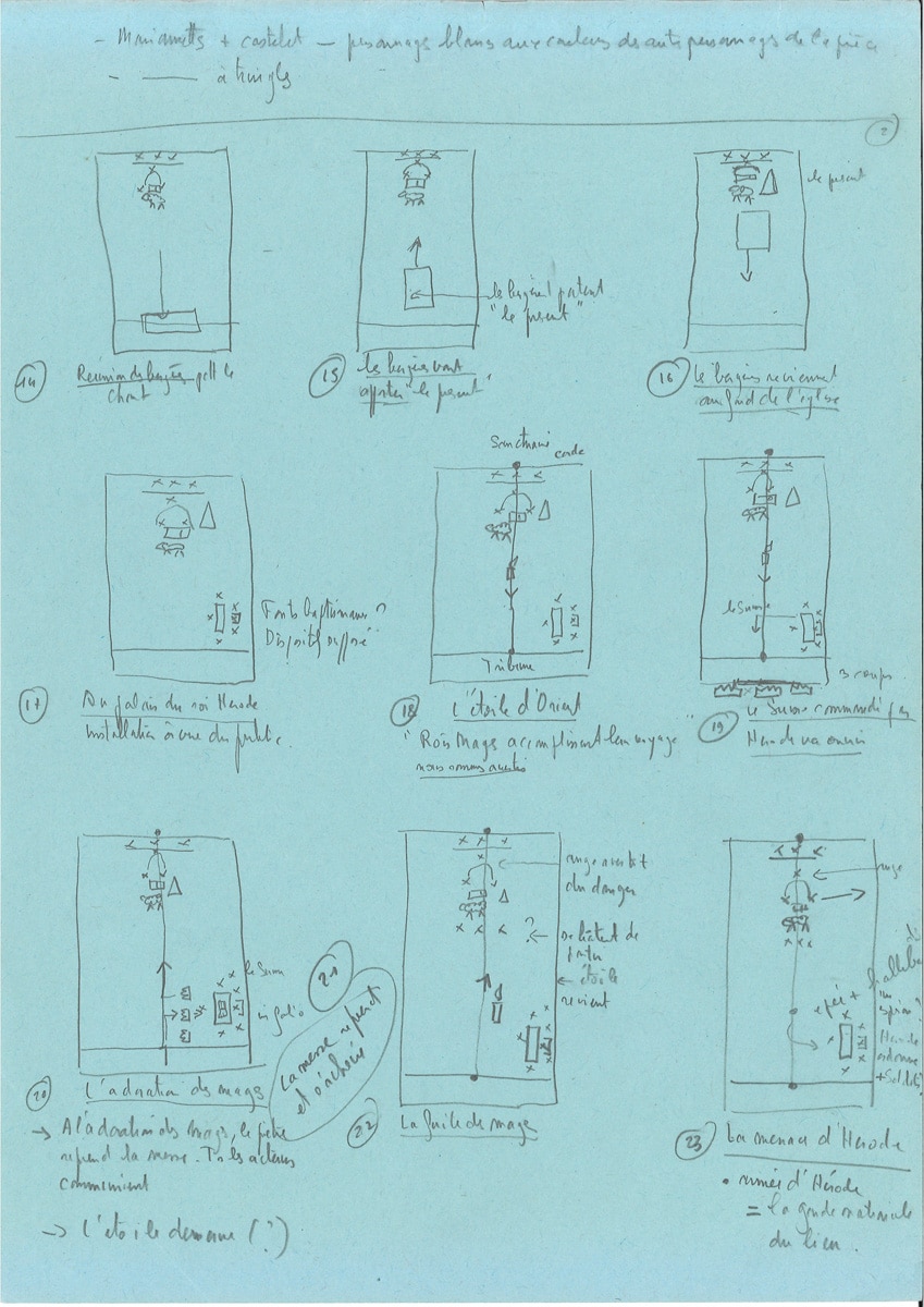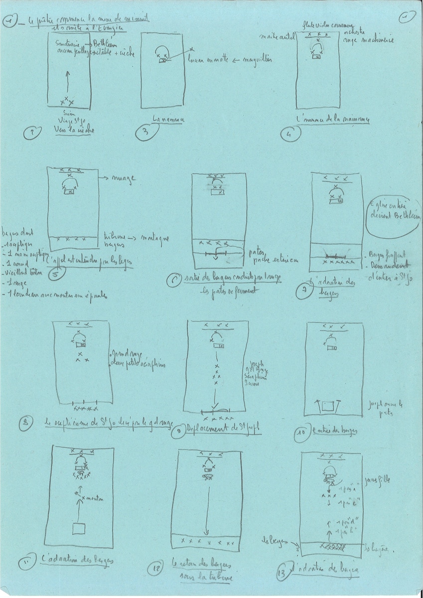 Aquera representacion ne’s plaça pas ni abans ni après l’ofici, mes au miei d’aqueste, au seguit de l’evangèli. La glèisa tota que vad alavetz, per convenença, l’establa de