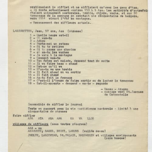 Suite de l’information sur la pratique du langage sifflé à Aas