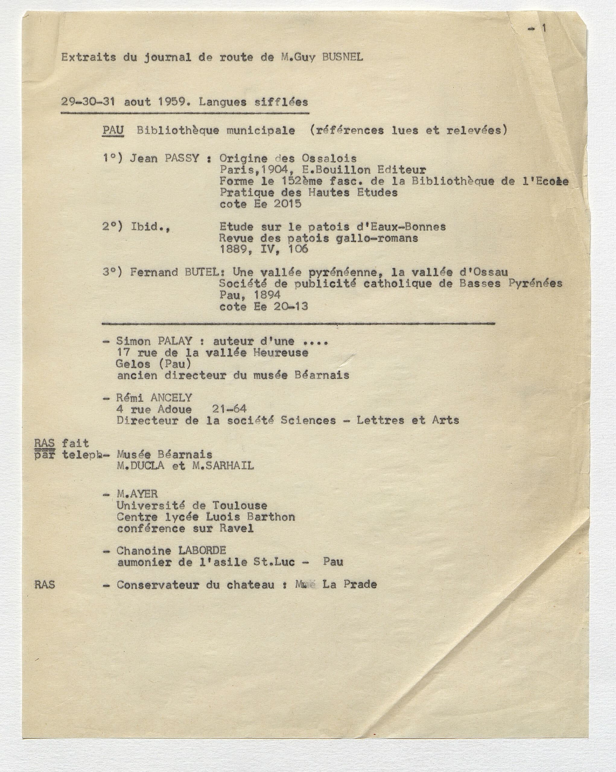 Carnet d’enquête de René-Guy Busnel (extraits) / Quasernet d’enquèsta de René-Guy Busnel (extrèits)