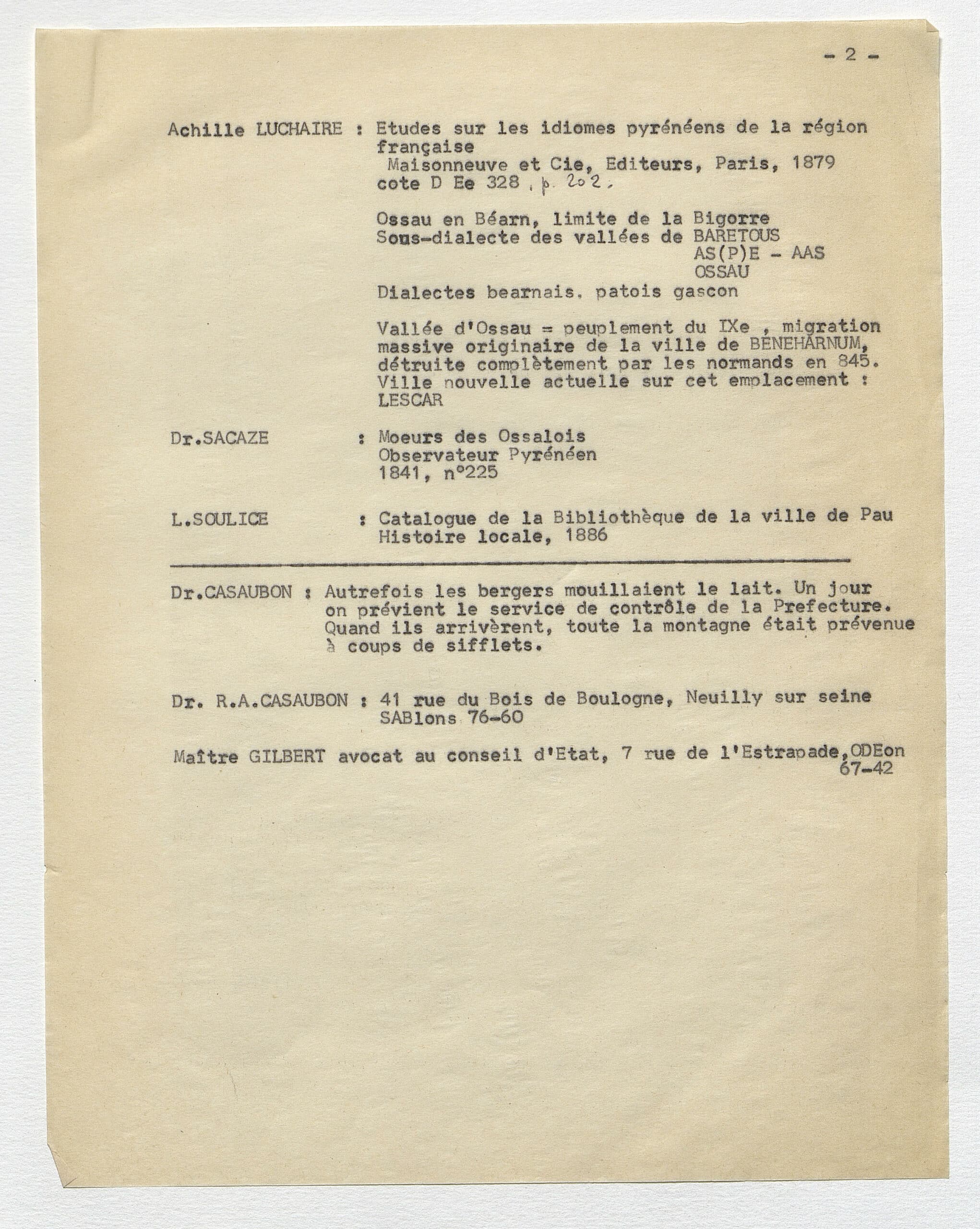 Enquêtes sur la Vallée d’Ossau (explications et commentaires en français)