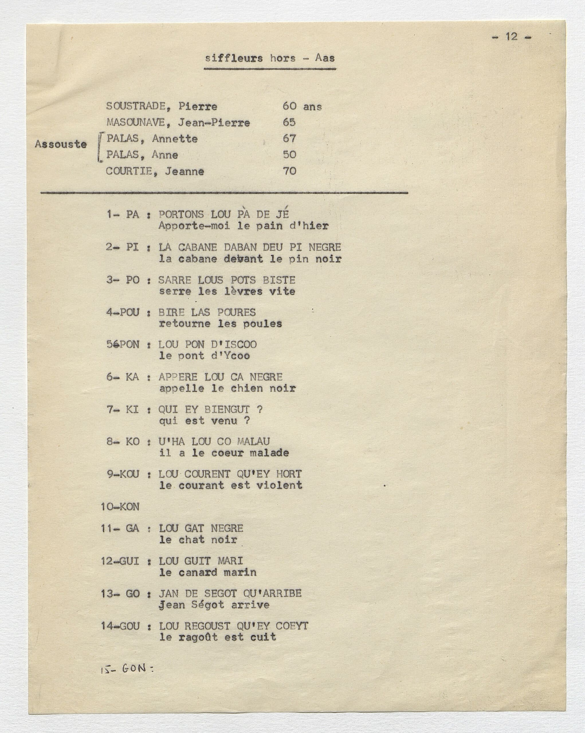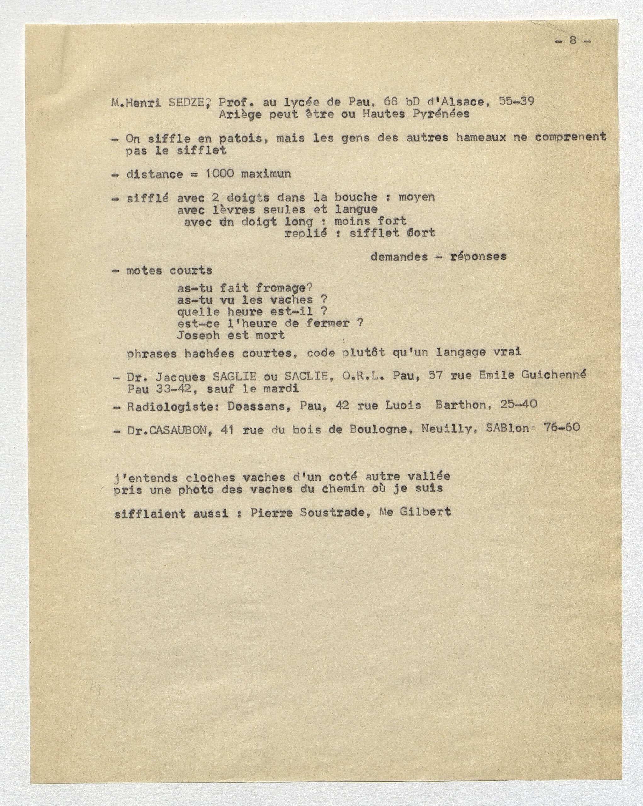 Suite de l’information sur la pratique du langage sifflé à Aas
